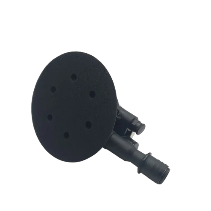 Model AT-150 został wyposażony w system odsysania pyłu, co poprawia komfort pracy i ogranicza zapylenie stanowiska. Szlifierka dostarczana jest z tarczą na rzep o średnicy 150 mm, workiem oraz przewodem odsysającym.