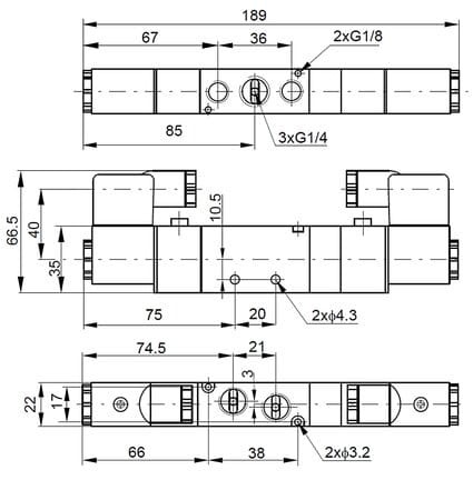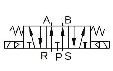 Urządzenia te wyposażone są w dwa elektromagnesy i sprężynę centrującą, która ustawia zawór w pozycji środkowej w stanie beznapięciowym. Elektrozawory tej serii mogą być montowane zarówno bezpośrednio na przewodach, jak i na płytach zaworowych. Napięcie sterowania dobierane jest indywidualnie w wariantach produktu. W kanałach odpowietrzających (3 i 5) zaleca się stosowanie tłumików hałasu, co pozwala ograniczyć hałas układu pneumatycznego.