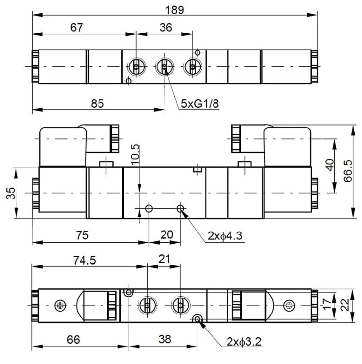 Zawór elektromagnetyczny typu 5/3 z gwintem G1/8 w wersji z położeniem środkowym odciętym przeznaczony jest do sterowania ruchem siłowników pneumatycznych dwustronnego działania – liniowych oraz obrotowych. Dzięki centralnemu położeniu odciętemu możliwe jest zatrzymanie aktuatora w dowolnym punkcie skoku poprzez zablokowanie przepływu powietrza.