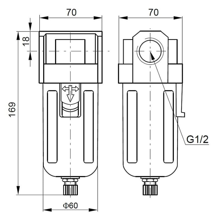 Filtr stosowany do separacji kondensatu i cząstek stałych w układach pneumatycznych. Zapewnia skuteczną filtrację sprężonego powietrza w standardzie 5 µm, co umożliwia ochronę elementów wykonawczych i zaworów w instalacji.
