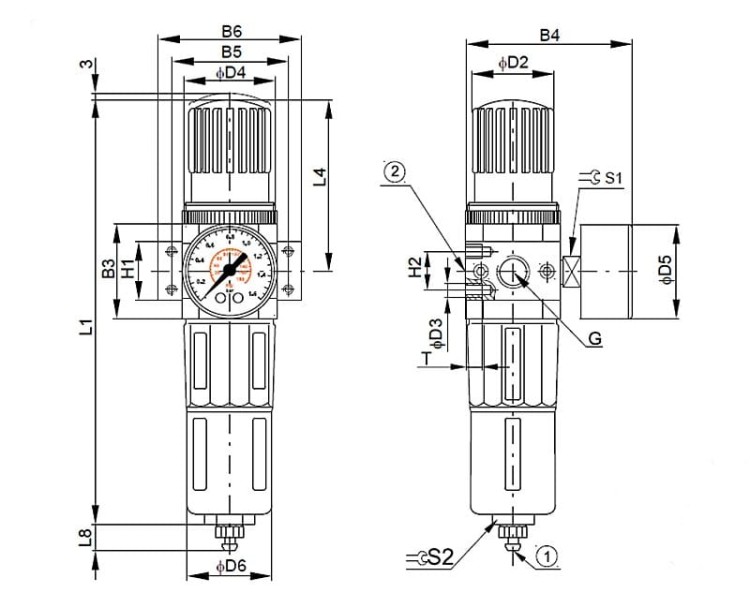 Filtroreduktor AFR G1/4 łączy funkcję oczyszczania i regulacji ciśnienia sprężonego powietrza w jednej obudowie. Wyposażony jest w filtr o dokładności 5 μm oraz spust kondensatu działający półautomatycznie przy spadku ciśnienia poniżej 1 bar.