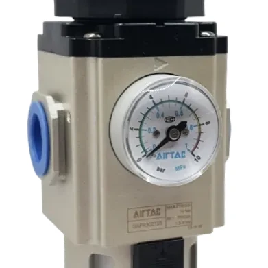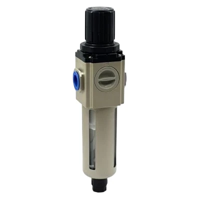 Kubek filtracyjny wykonany jest z poliwęglanu i posiada dodatkową metalową osłonę zabezpieczającą przed uszkodzeniami. Stopień filtracji 40 μm skutecznie usuwa zanieczyszczenia stałe. Spust kondensatu może być obsługiwany w trybie półautomatycznym lub ręcznym, a regulowane ciśnienie wyjściowe osiąga wartość do 0,9 MPa. W zestawie znajduje się manometr oraz wspornik montażowy. Filtroreduktor nie posiada zaworu zwrotnego.