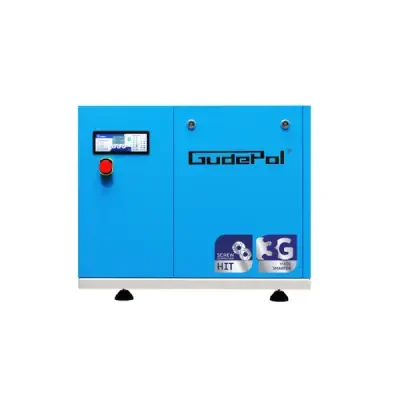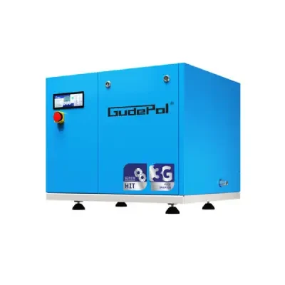 Sprężarka śrubowa GUDEPOL serii HIT-3G to kompleksowe rozwiązanie w postaci źródła sprężonego powietrza w firmie, skonstruowane w oparciu o najnowocześniejsze technologie światowe i wysokiej jakości materiały. Kompresor HIT-3G wyposażony jest w panel mikroprocesorowy układu sterowania, co jest nowością w kompresorach tej klasy. Rozwiązanie to pozwala na łatwą i czytelną pracę urządzenia – układ automatycznie wyłapuje nieprawidłowości pracy i informuje o nich, wyświetlając rodzaj usterki, a w przypadku zagrożenia uszkodzenia sprężarki wyłącza ją.