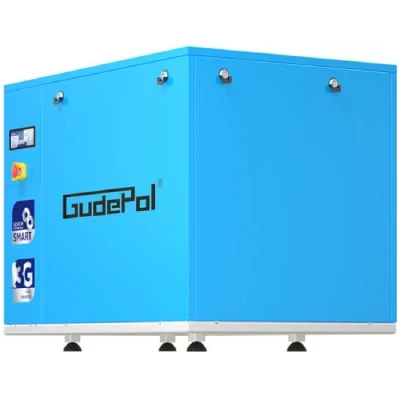 Aby osiągnąć zamierzony cel, inżynierowie firmy Gudepol opracowali nowoczesną obudowę bezramową, co pozwoliło na zmniejszenie poziomu drgań oraz poprawę przepływu powietrza wewnątrz kompresora śrubowego.