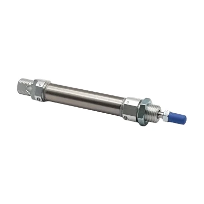 Model ten wyposażono w magnes umożliwiający współpracę z czujnikami położenia tłoka. Posiada elastyczną amortyzację skoku oraz poduszki powietrzne, które zapewniają dodatkowe tłumienie ruchu i wydłużają żywotność urządzenia. Pokrywa tylna siłownika wyposażona jest w przyłącze promieniowe, a gwint tłoczyska jest męski. Porty przyłączeniowe w standardzie M5x0,8 umożliwiają łatwą integrację z instalacją pneumatyczną.