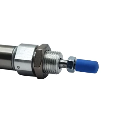 Siłownik posiada porty przyłączeniowe o gwincie G1/8, a tłoczysko wyposażone jest w męski gwint umożliwiający montaż akcesoriów roboczych.