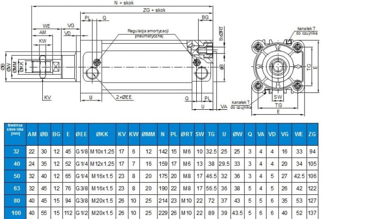 Siłownik zgodny z normą ISO 15552. Wersja ekonomiczna wyposażona w uszczelnienia gumowe. Przeznaczony do realizacji ruchu posuwisto-zwrotnego w instalacjach pneumatycznych.