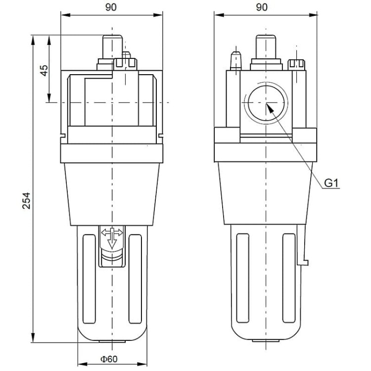 Obudowa została wykonana z aluminium, natomiast zbiornik i kopułka smarownicy z wytrzymałego poliwęglanu. Uszczelnienia z gumy NBR zapewniają szczelność i odporność na działanie mediów.
