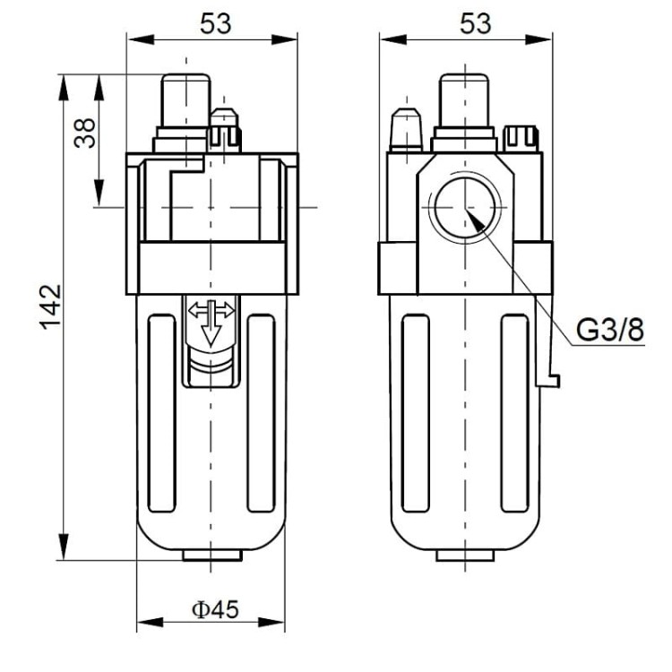 Obudowa została wykonana z aluminium, natomiast zbiornik i kopułka smarownicy z wytrzymałego poliwęglanu. Uszczelnienia z gumy NBR zapewniają szczelność i odporność na działanie mediów.