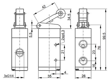 Zawór krańcowy z dźwignią z rolką 3/2 G1/4