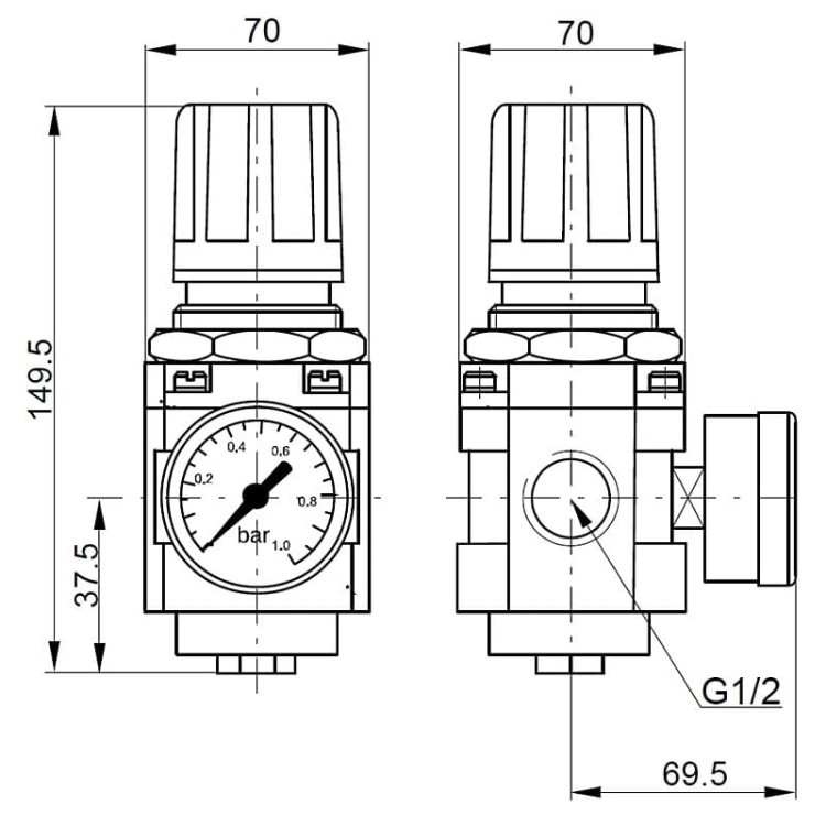 Stosowany w systemach przygotowania powietrza, automatyce przemysłowej oraz układach wymagających precyzyjnej regulacji ciśnienia wyjściowego.