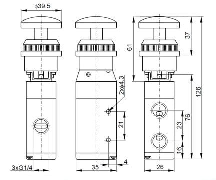 | Rodzaj zaworu | 3/2 z przyciskiem awaryjnym |